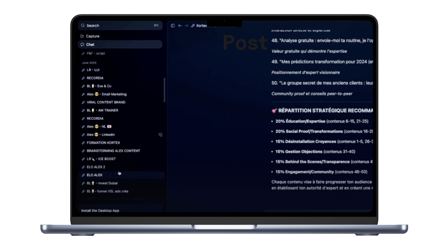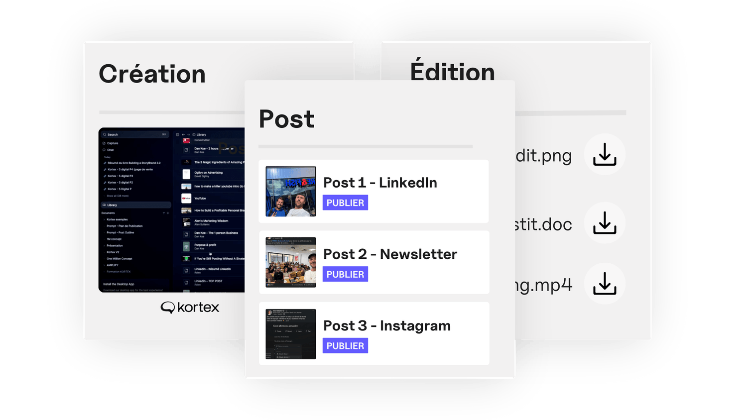 Combine toutes les IA de Kortex pour générer, améliorer et structurer tes posts en quelques minutes.